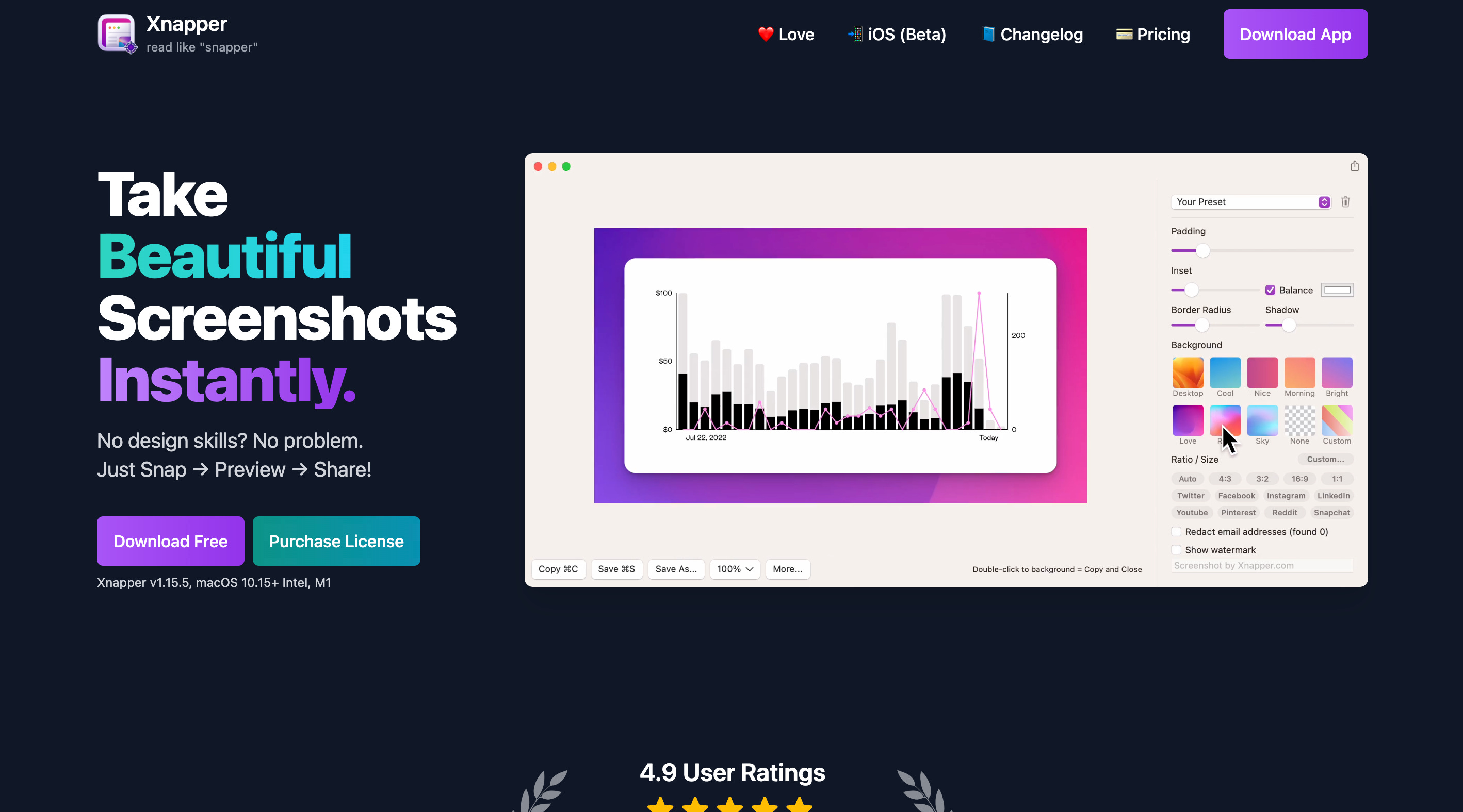 Take Beautiful Screenshots Instantly. No design skills? No problem. Just Snap → Preview → Share!
