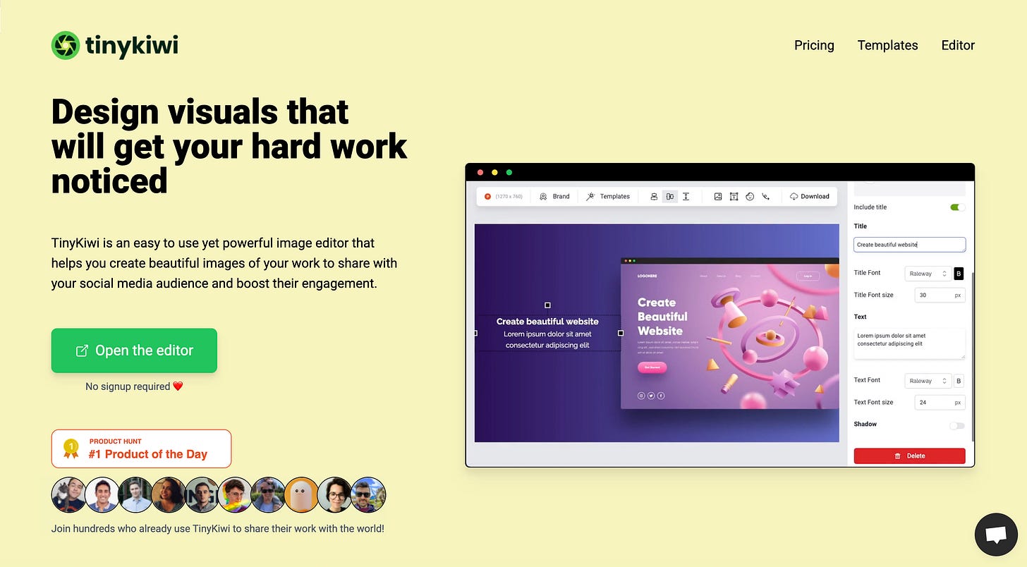 Created by Yossi Segev, TinyKiwi was actually the #1 product on Product Hunt on November 6th.