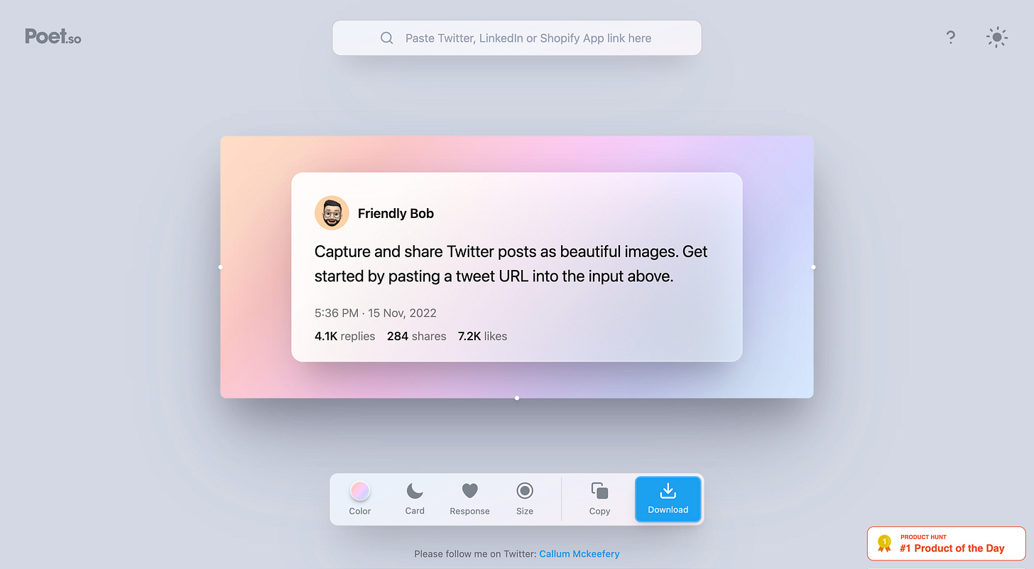 I swear it’s a coincidence that Poet also claimed top spot on Product Hunt (August 21, 2021)! I’m discovering this as I write this issue :) Poet is the brainchild of Callum Mckeefery (also the CEO of reviews.io).
