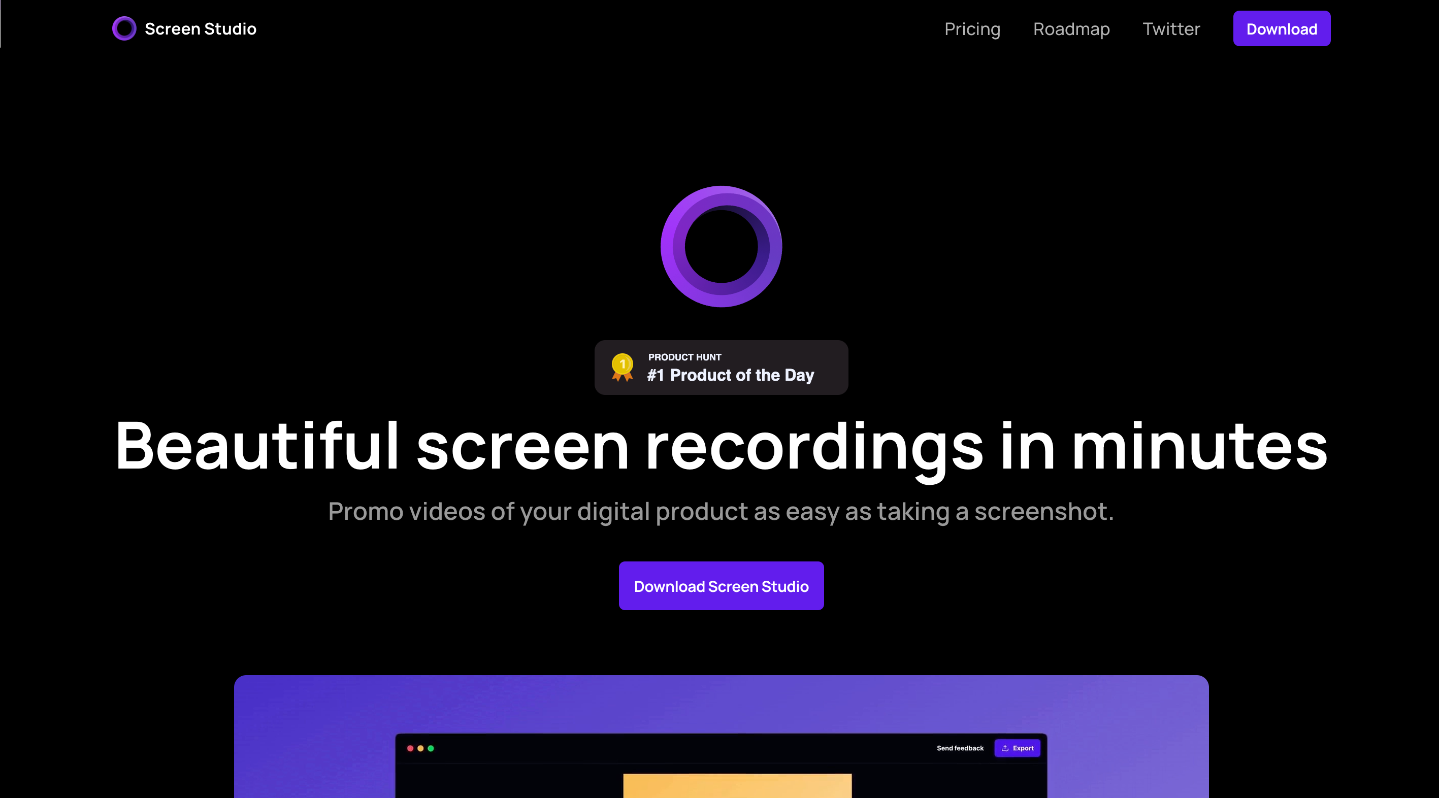 Beautiful screen recordings in minutes. Promo videos of your digital product as easy as taking a screenshot.